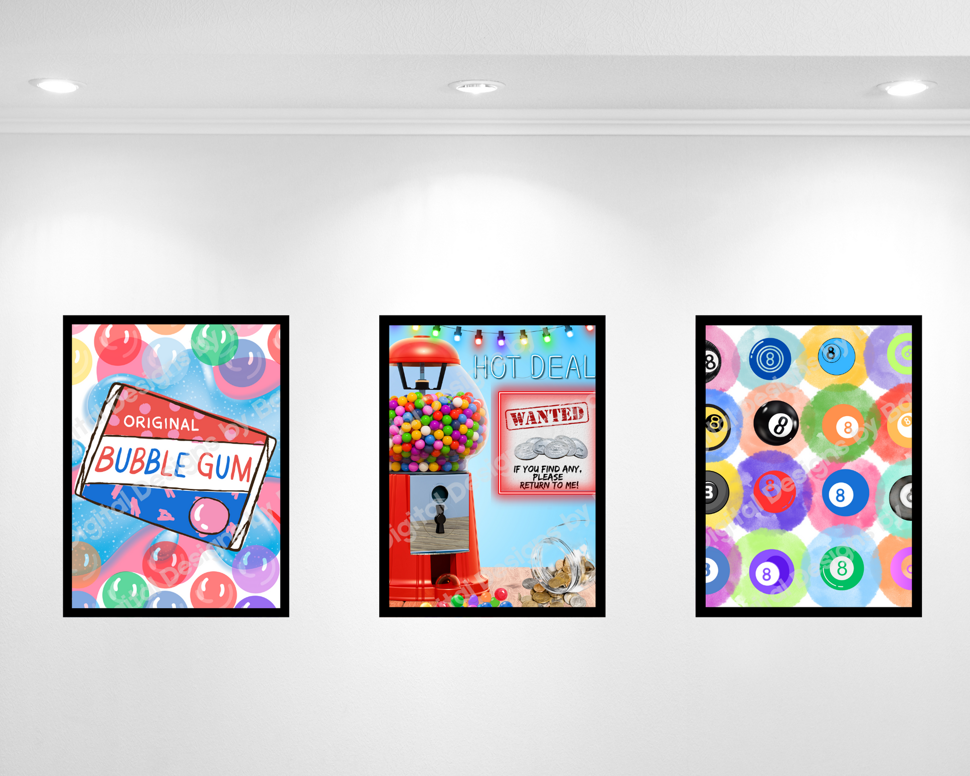 This retro bubble-gum inspired design blends candy-shop nostalgia with modern color play — a cheerful piece that sparks joy and invites a smile. Looks great on a gallery wall with Hot Deal and Lucky 8 to bring color and fun to any room.