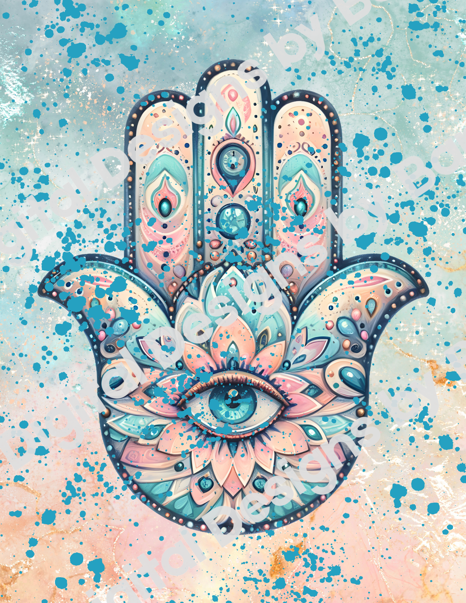 hamsa turquoise flecks — an elegant judaica print designed to bring beauty and calm into any space. Printed with archival inks on premium stock for rich detail and lasting color. A refined accent for home, office, or gifting.