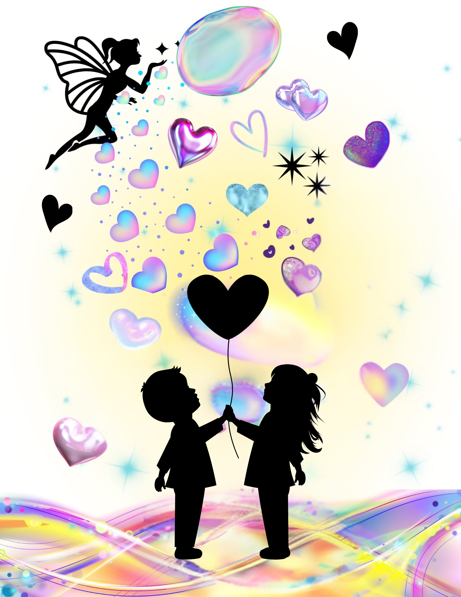 Two children stand together beneath a soft burst of color and light, their silhouettes captured in a moment of shared awe. The scene celebrates the boundless imagination of childhood — a reminder of how curiosity and connection can turn even the simplest moments into something extraordinary.