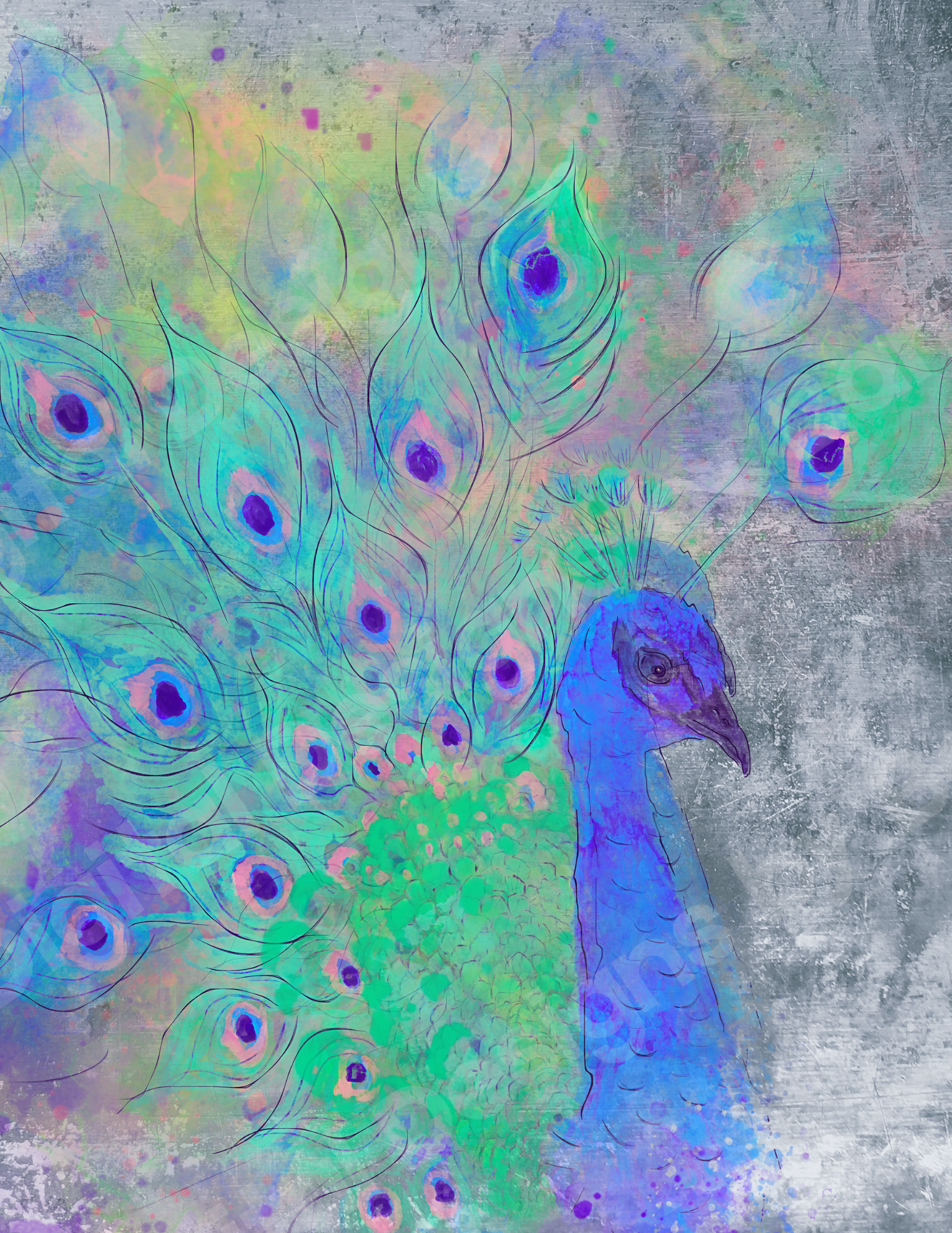 Majestic yet dreamlike, “Peacock Blues” transforms a symbol of beauty into an ethereal vision. Layers of teal, violet, and jade wash across a textured canvas, while the bird’s feathers shimmer with artistic abstraction. The piece embodies grace, confidence, and quiet strength — a statement print that brings sophistication and soul to any space.