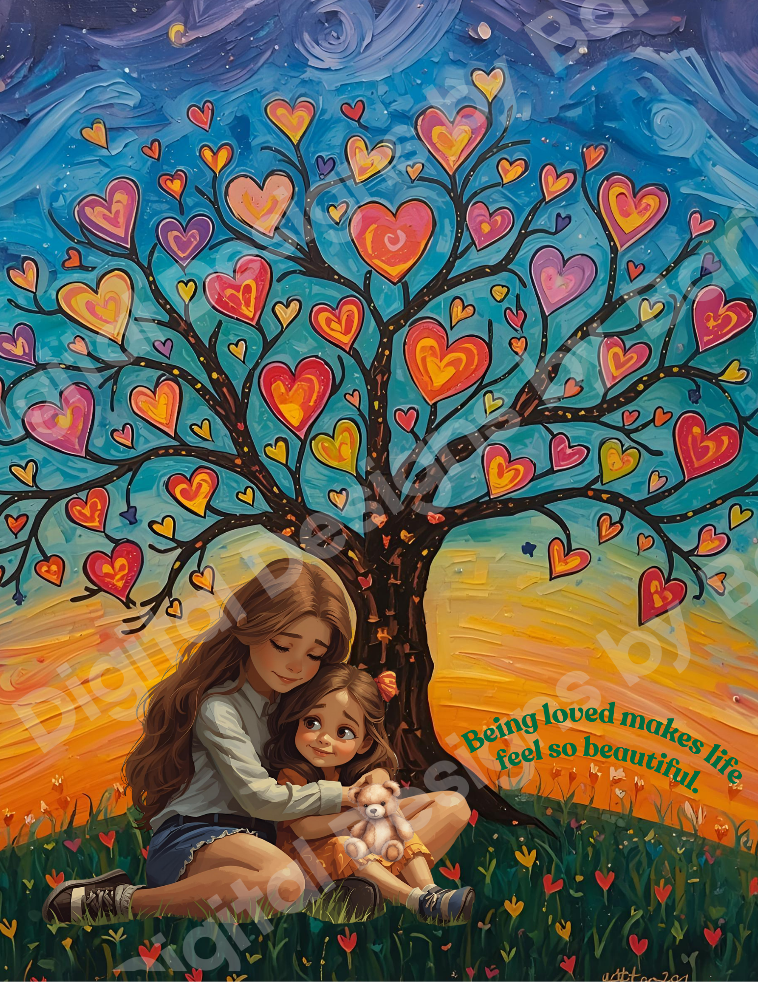This radiant scene celebrates sisterhood and shared strength — a reminder that love and support bloom brightest when rooted in peace, hope, and togetherness.