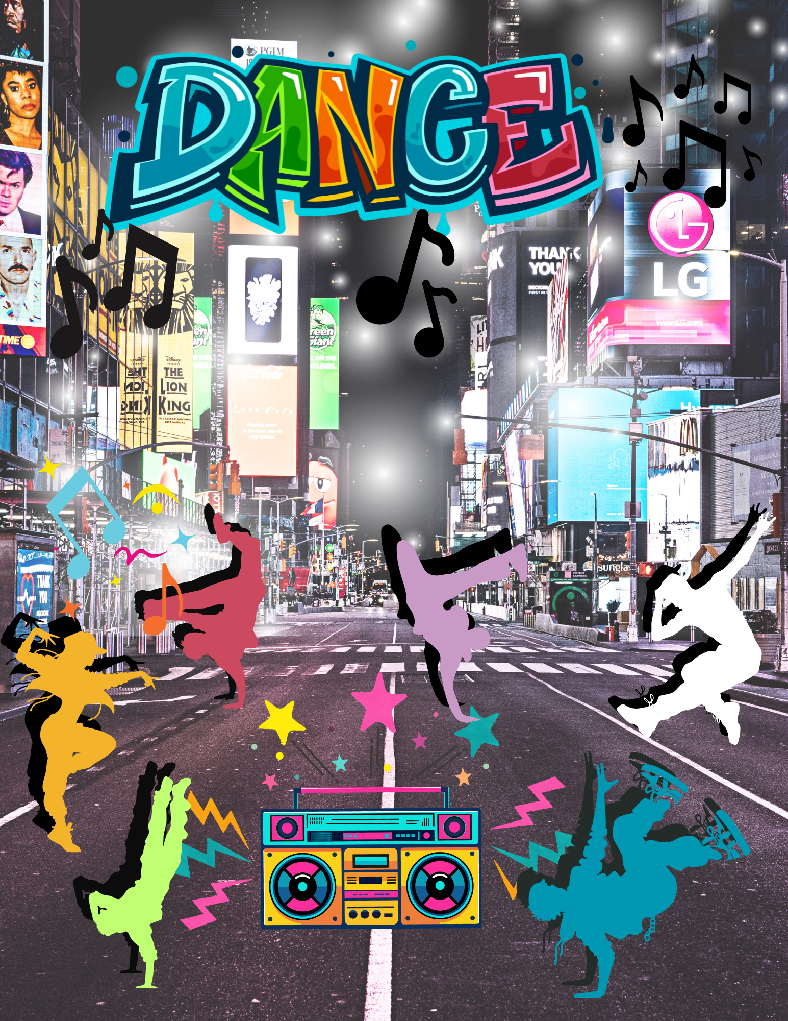 Urban energy and creative spirit collide in this vivid scene — music, movement, and art blending into one dynamic expression of life on the street.