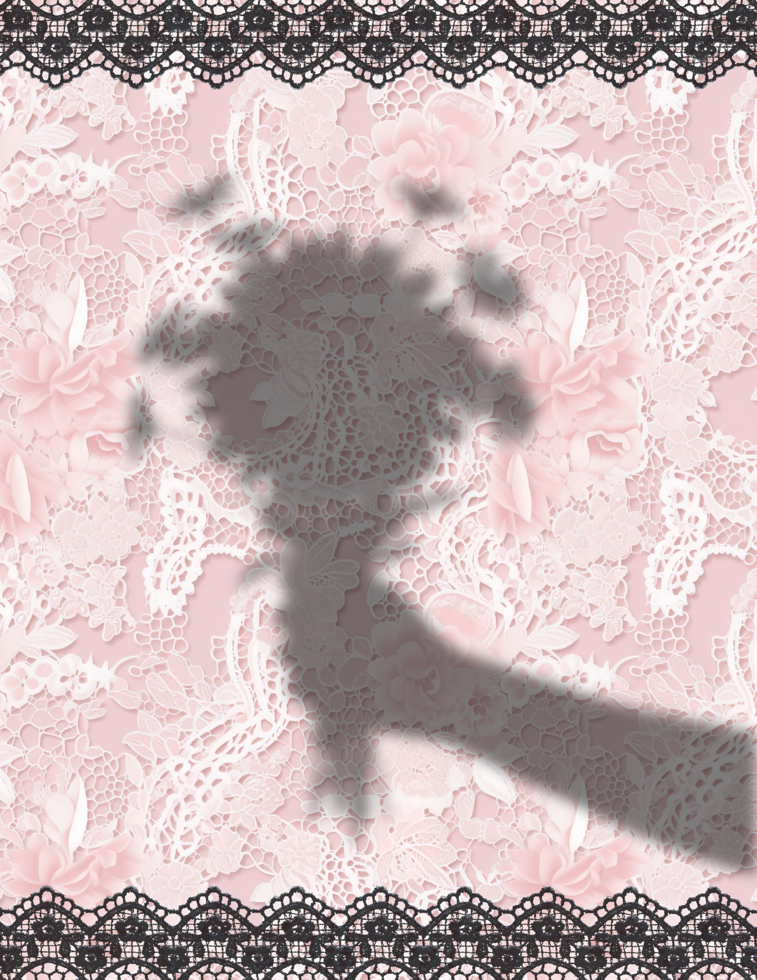 A bouquet silhouette with drifting petals over blush lace—calm, graceful, and serene. Part of the Whispers Behind the Lace Trio from the Love & Lace Collection; pairs with Shadows of Love and Promise in Bloom.